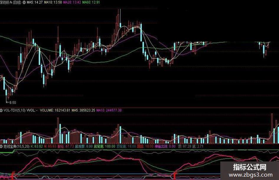 底背离: IF((VAR26<10),90,100), COLORGREEN,LINETHICK2;
