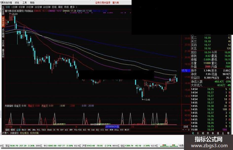 RSI底背离:STICKLINE(FILTER(B3>0,5),0,0.5,3,0),COLORWHITE;