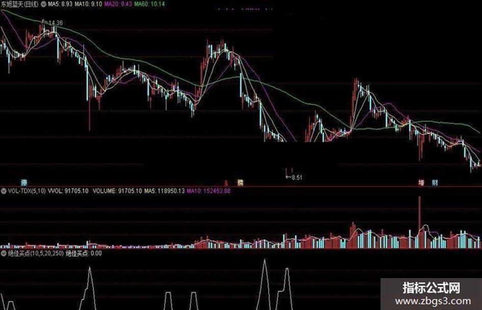 绝佳买点:IF(C=C,MA(IF(LOW<=VARF10,(VARFF+VARF11*2)/2,0),3),100000000)/(200);
