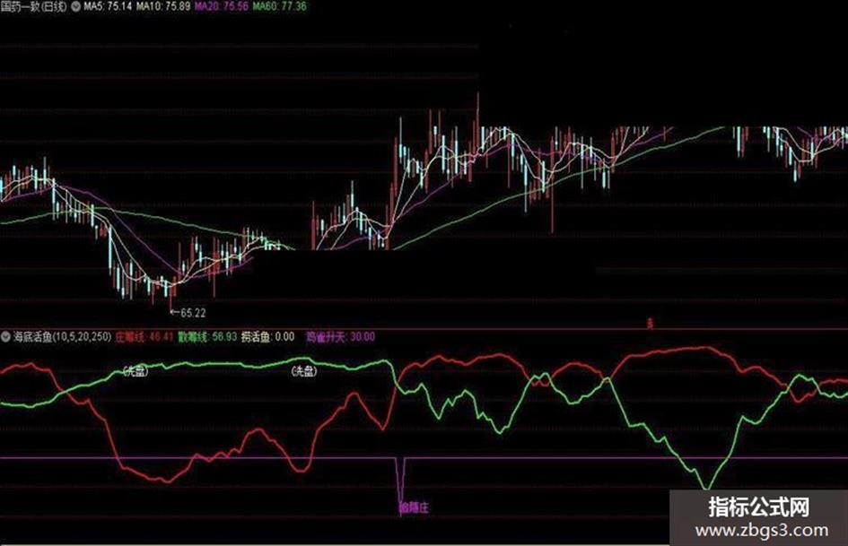 捞活鱼:FILTER((CROSS(5,庄筹线) AND 散筹线<20)*40,10)COLORYELLOW;