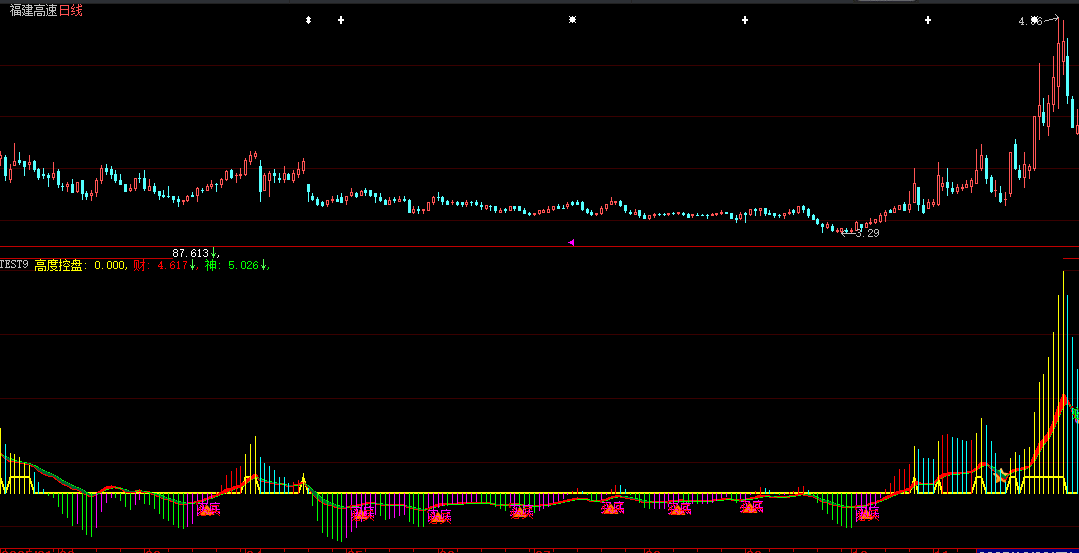 STICKLINE(控盘>REF(控盘,1) AND 控盘<0,控盘,0,1,1),COLORFF00FF;