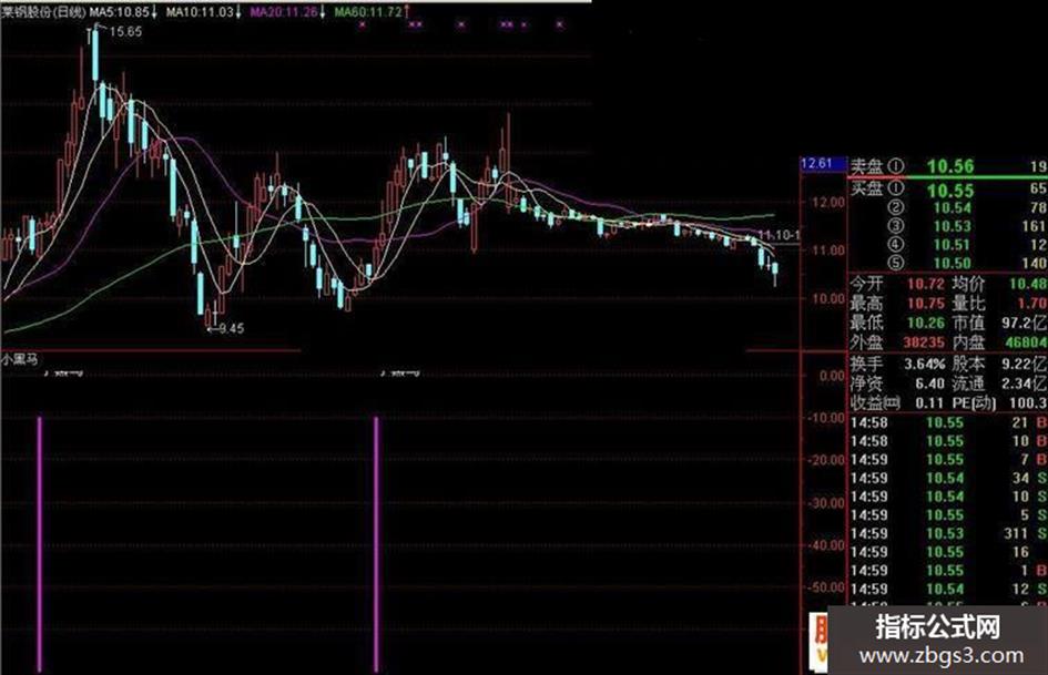 小黑马:=MA(A,180),COLORFF00FF,LINETHICK1;