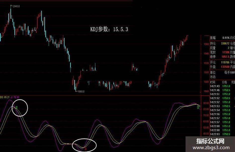 通达信、文华、博弈的副图使用,KDJ参数15.5.3和80.3.3,80的买卖点更准一些。