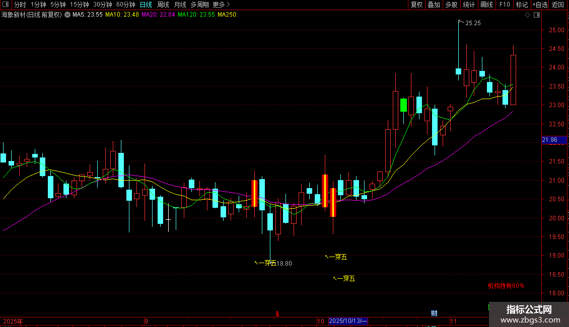 DRAWTEXT(选股,L*0.94,'↖一穿五'),COLORYELLOW;