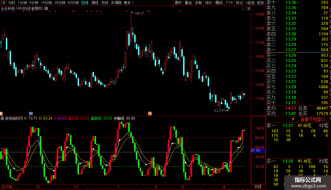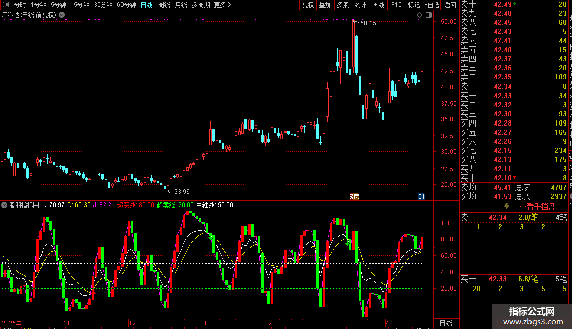 RSV:=(CLOSE-LLV(LOW,N))/(HHV(HIGH,N)-LLV(LOW,N))*100;