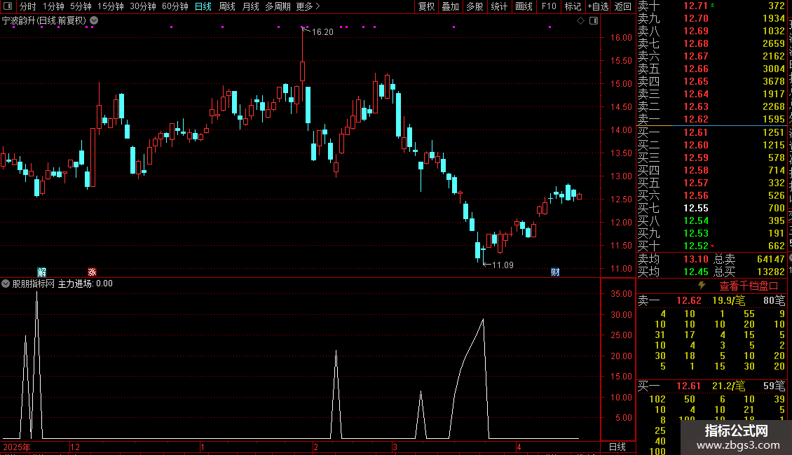 主力进场:IF(VAR5>REF(VAR5,1),VAR5,0);
