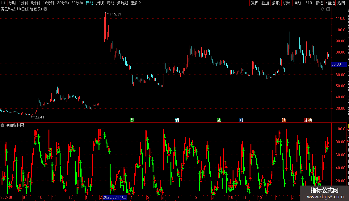 7、追涨杀跌:股价上升博弈K线破80近100时追进,只要博弈K线持续在80以上高位,根据K线组合形态上涨趋势未破就持股,待博弈K线向下破80 ,K线组合形态出现下跌信号时抛出,此法也须快进快出。