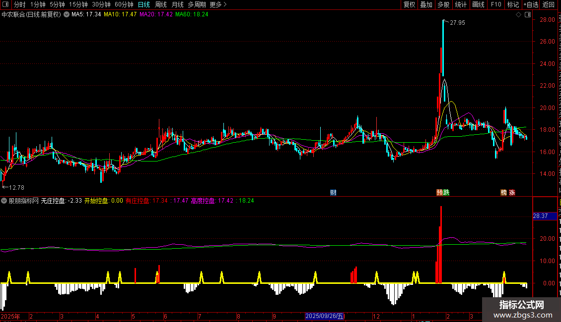 STICKLINE(控盘<0,控盘,0,1,0),COLORWHITE;