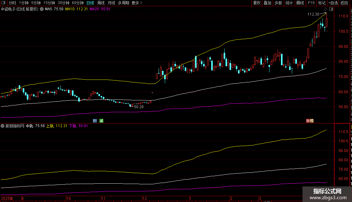通达信三条轨道线,股价站上中轨可关注,突破上轨可跟进