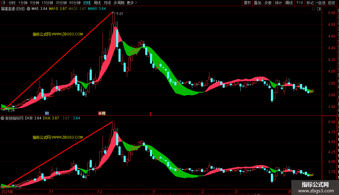 缠论 的公式,多空画线飘带,自动划线