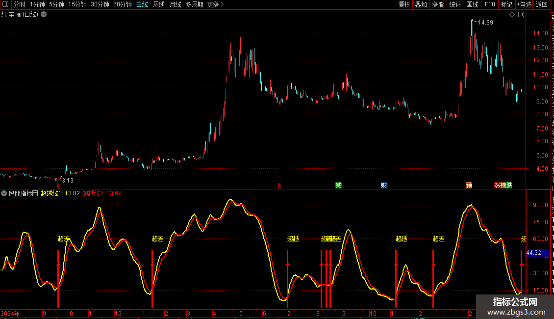 DRAWTEXT(超越点,60,'超越'),COLORYELLOW;