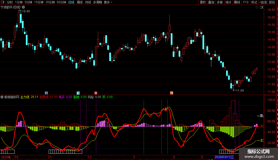 这款副图在配合我昨天发的主图那就是买卖神器我说的主图就是图片上的主图,希望大家不要错过这款好指标,使用方法:走势线上穿主力线为买点,买点和卖点都有箭头提示,绿色的竖杠线也是高抛线 如果说走势线穿越主力线走势完美的话出现了绿色竖杠高抛线也可以拿着不需要立马卖,如果两根线出现拐头向下又出现横杠绿线那就可以先抛了,大家多多研究,时间的关系就不多说了,这款副图放到手机上用感觉更舒服更细腻,电脑上用也很好