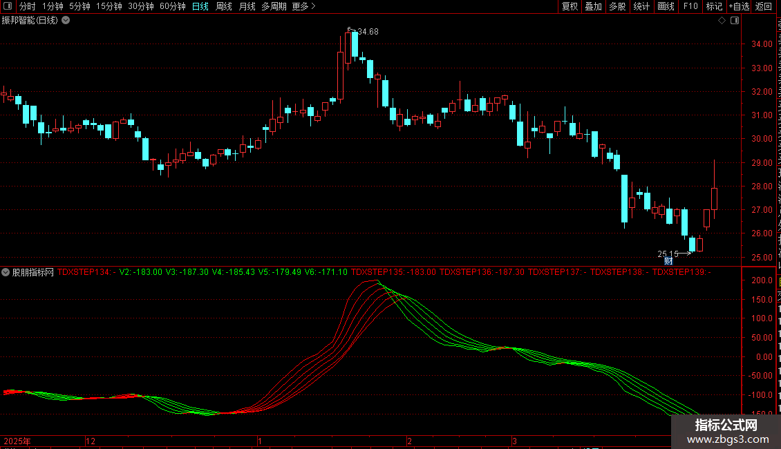 TDXSTEP136:IF(V3>=REF(V3,1),V3,DRAWNULL),COLORRED;