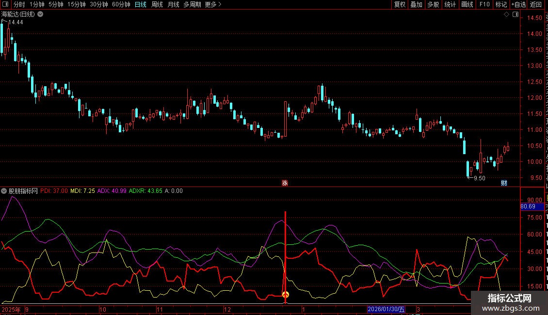 配合系统指标DMI使用效果更好。出信号时,PDI线上穿其他三线,介入成功率更高。
