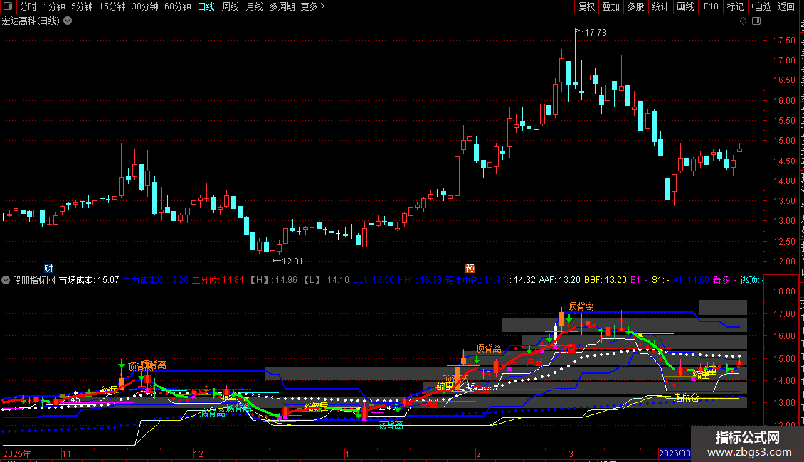 二分位:(H+L)/2 ,LINETHICK4,COLORRED,POINTDOT;