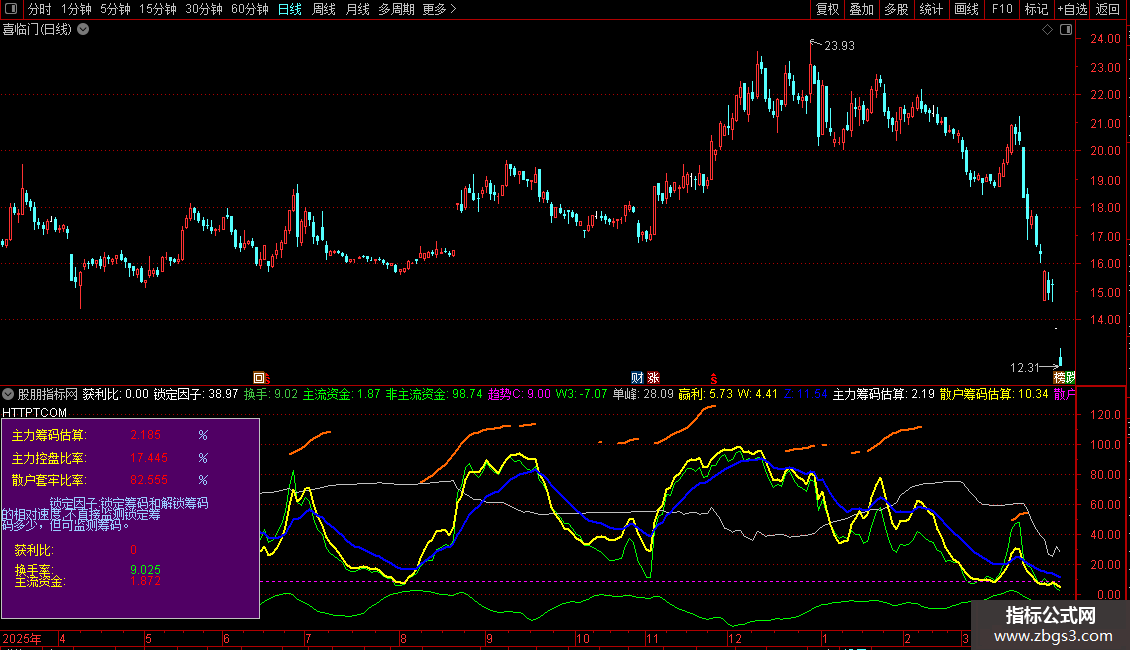 DRAWTEXT_FIX(CURRBARSCOUNT=1,0.01,0.30,0, '散户套牢比率:'),COLORYELLOW;
