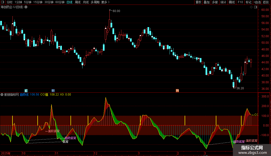 DRAWTEXT(底背驰,LLV(CCI,5),'←面积底背'),COLORLIRED;