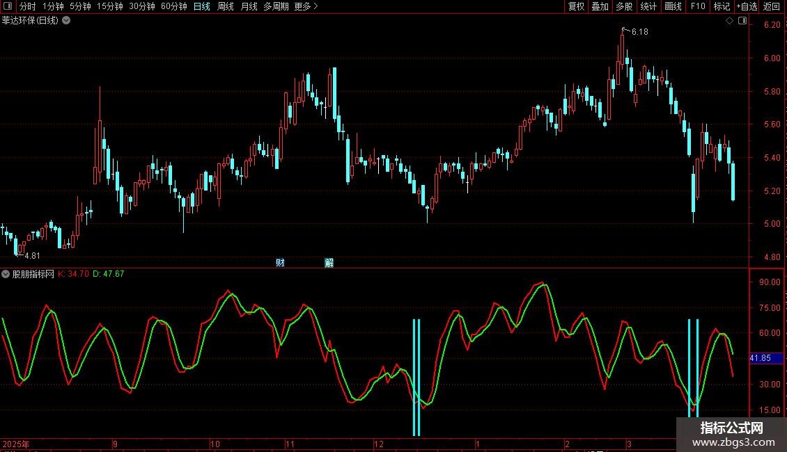D: EMA(0.667*REF(K,1)+0.333*K,2),COLORGREEN,LINETHICK2;