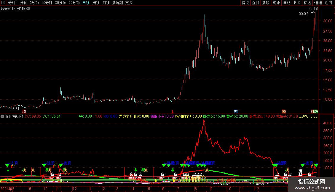 DRAWTEXT(绝对的主升 AND CC>CC1,110,'升');