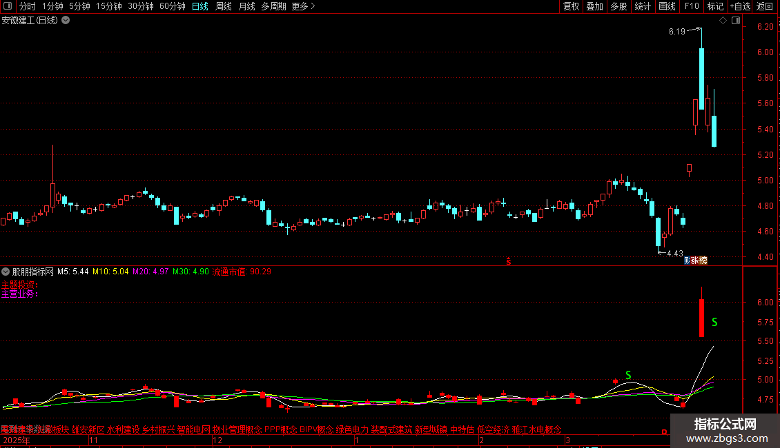 M5:MA(CLOSE,5); M10:MA(CLOSE,10);M20:MA(CLOSE,20); M30:MA(CLOSE,30);