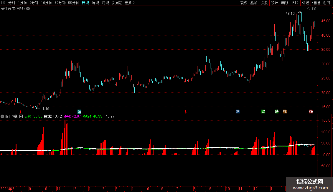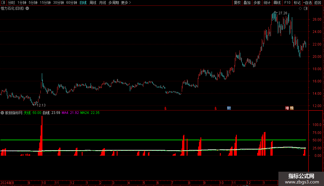 天线:50,COLORGREEN,LINETHICK2;DIFF:=EMA(CLOSE,12)-EMA(CLOSE,26);