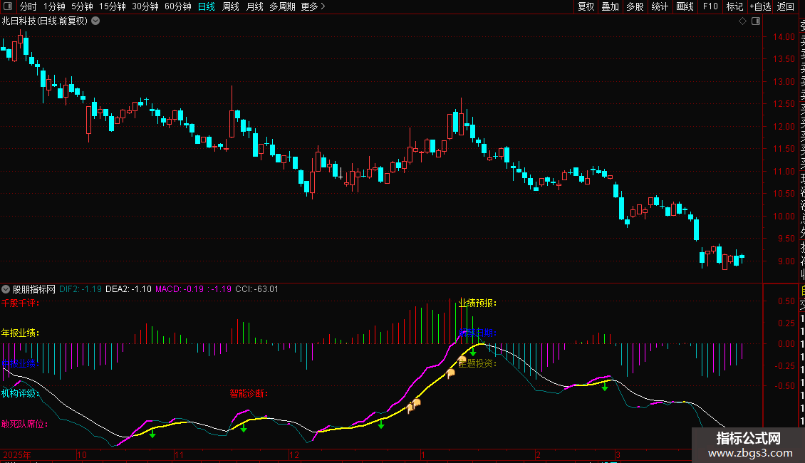DRAWTEXT_FIX(1,0.6,0,0,STRCAT('业绩预报:',EXTERNSTR(0,14))),COLORYELLOW;