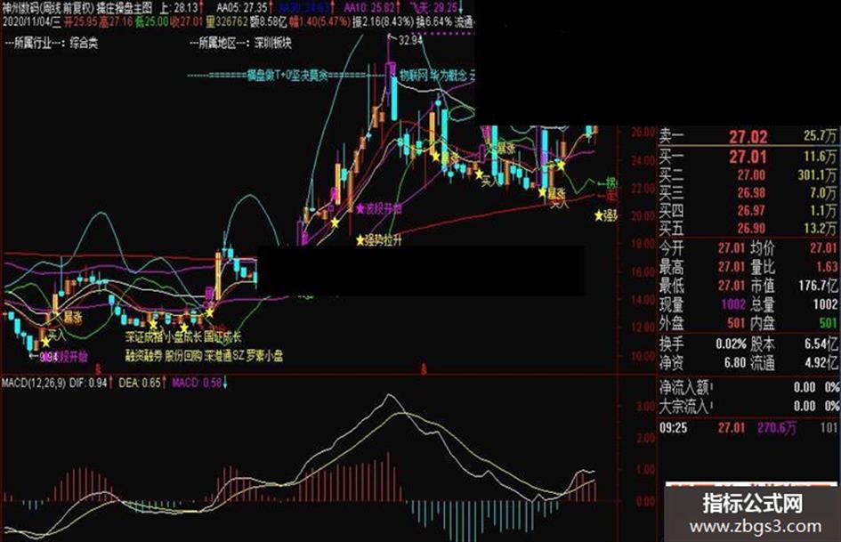 通达信【大单短线神器】分时主图指标...