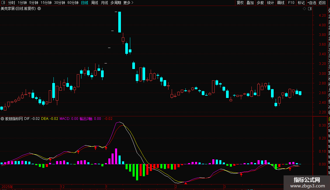 STICKLINE(红柱缩量条件,输出0轴,输出MACD,2,0),COLORCYAN;