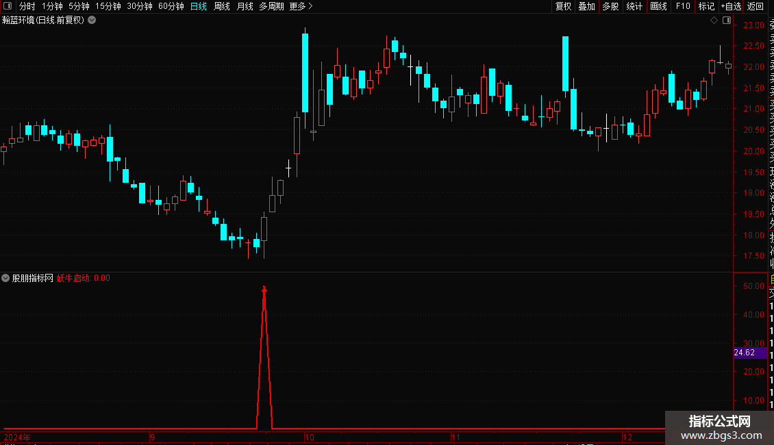 妖牛启动:IF(CROSS(VAR2,VAR3) AND VAR2<20,50,0),COLORRED,LINETHICK2;