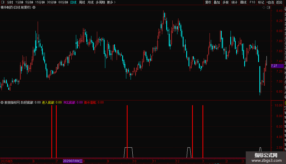 冲出底部:IF(CROSS(趋势线,底部线),10,0);