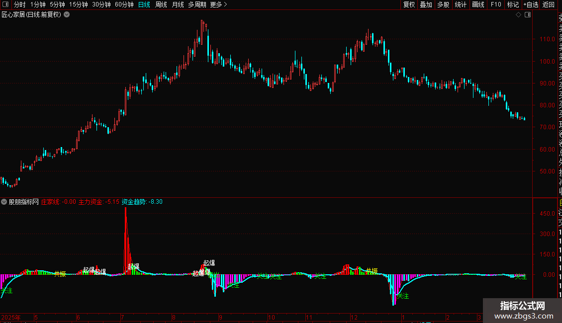 {主力资金-共振点起爆点副图指标公式}
