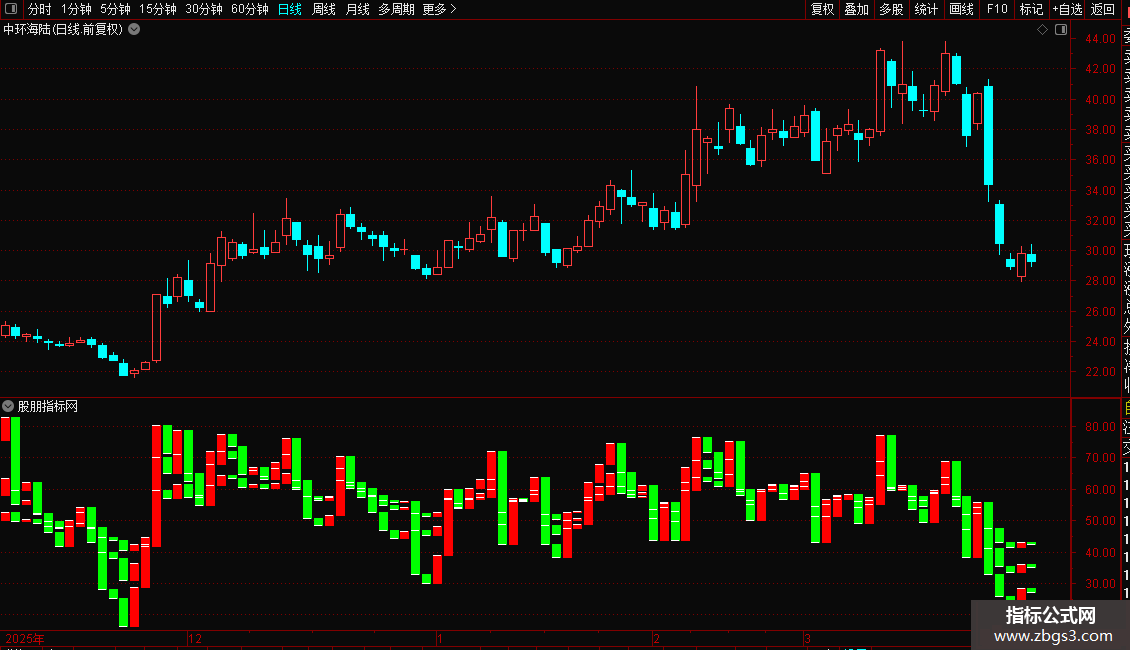 STICKLINE(RSI2<REF(RSI2,1),RSI2,REF(RSI2,1),3,0),COLORGREEN;