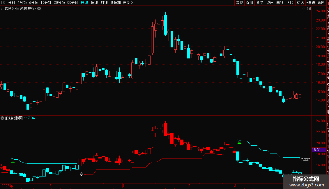 HH:=HHV(HIGH,1)/10*SJ+HHV(HIGH,2)/10+HHV(HIGH,2)/10+HHV(HIGH,4)/10+HHV(HIGH,4)/10+HHV(HIGH,8)/10+HHV(HIGH,8)/10+HHV(HIGH,13)/10+HHV(HIGH,40)/10+HHV(HIGH,20)/10;