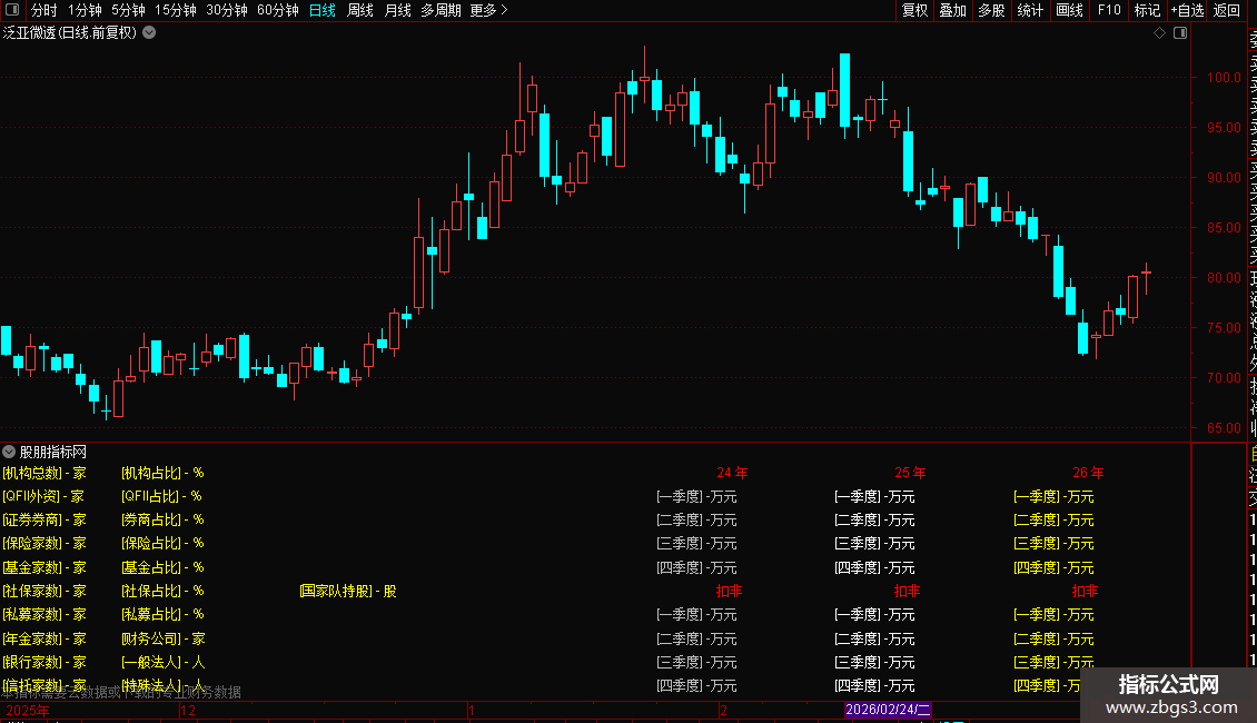 DRAWTEXT_FIX(ISLASTBAR,0,0.1,0,STRCAT('[QFII外资] ',STRCAT(CON2STR(QFII,0),' 家'))),COLORYELLOW;