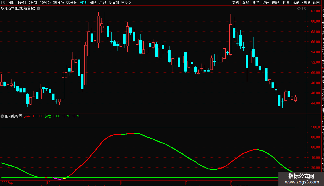 指标辅助使用,信号不会漂移,结合主图MA60均线效果好。