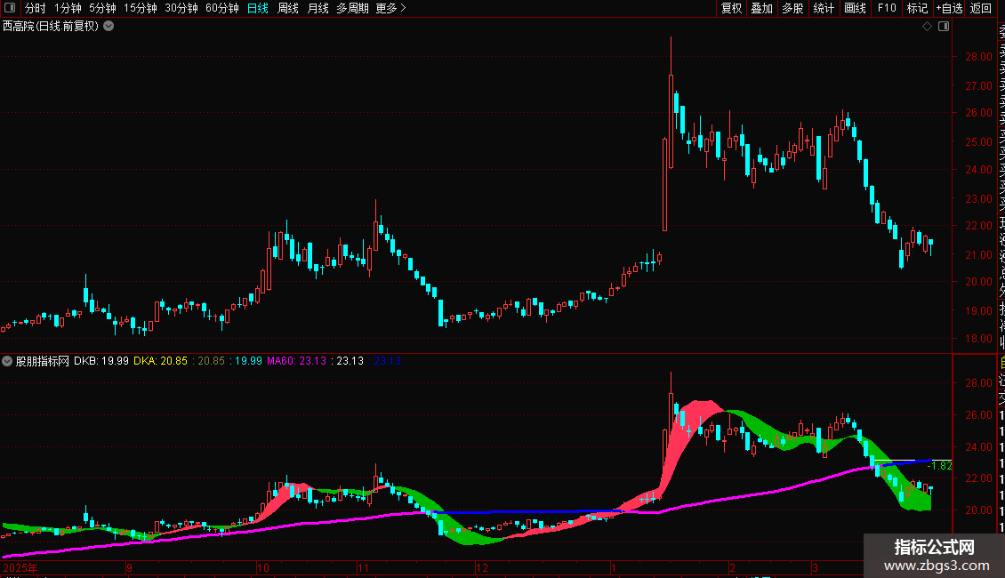MA60:MA(CLOSE,60)*SJ,LINETHICK3,COLORMAGENTA;