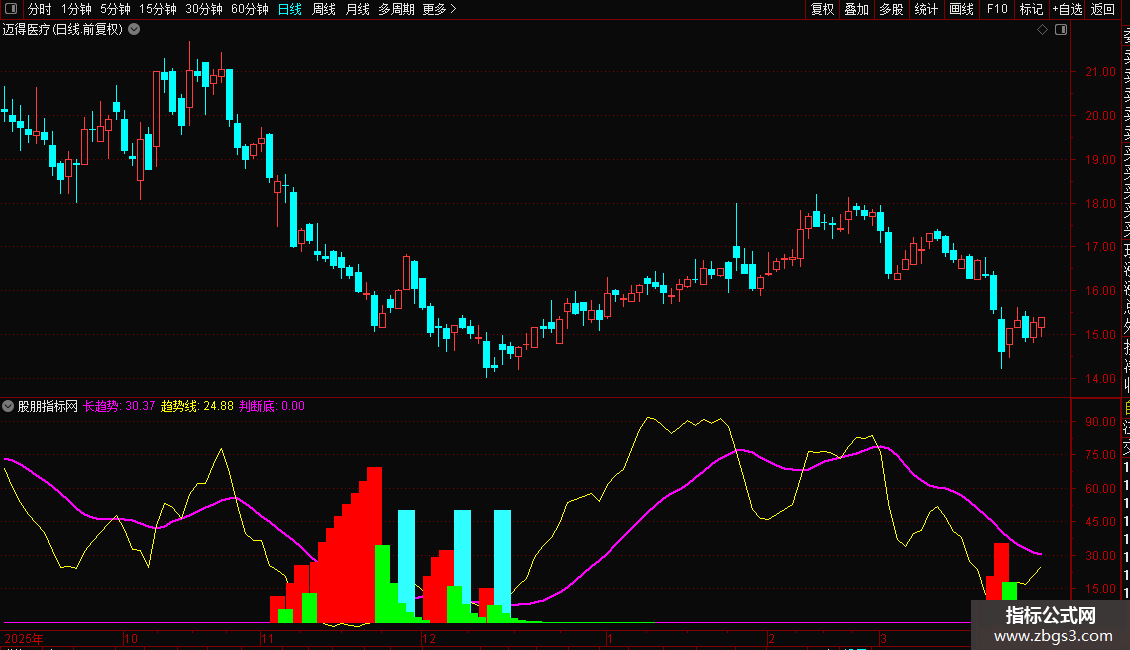 结合长短趋势判断来确定底的位置,从而决定是否进场买入!