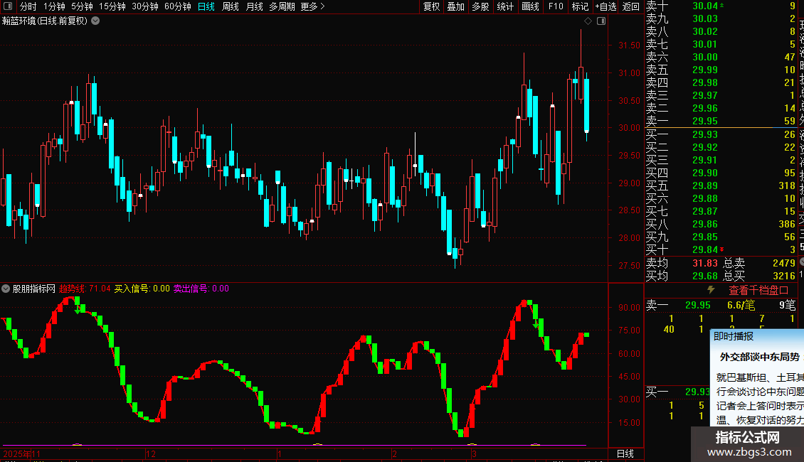 买入信号:CROSS(趋势线,VAR6) AND VAR6<20;