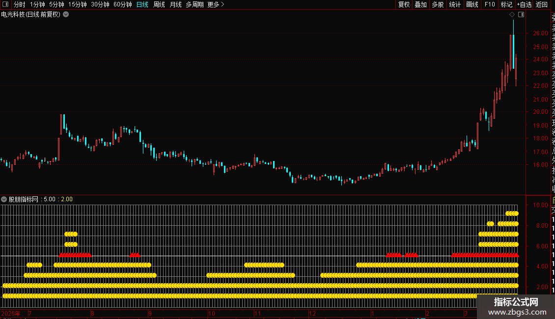 黄色一行出现,开始关注,二行出现,开始反弹,出现三四行,此股有行情,红色三角出现,此股开始走强,黄色,出现五行六行,进入主升浪,如果继续,黄色出现七卦、八卦,不是牛股就是妖股,抓住它。