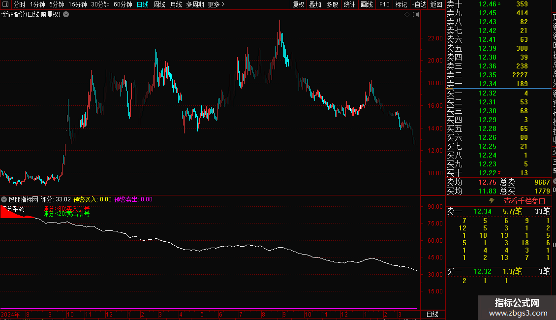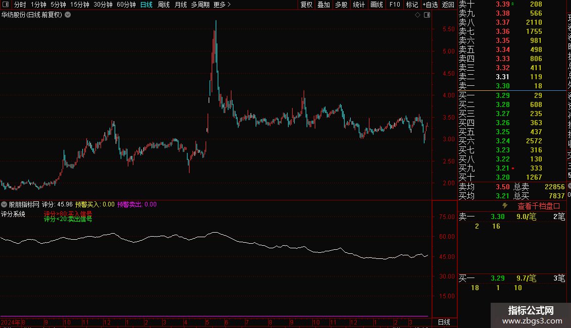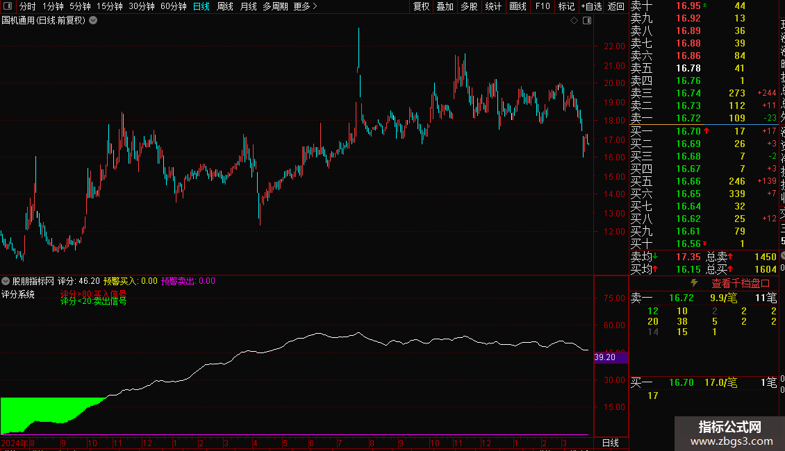 {通达信评分系统副图选股预警指标}