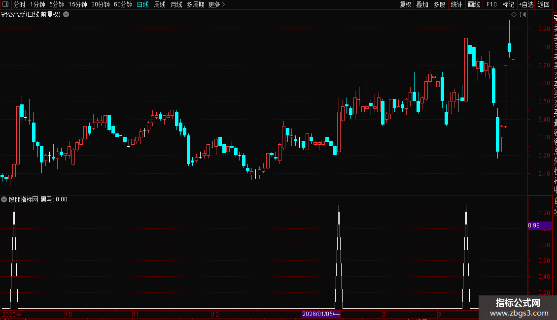 黑马:IF(VAR19<=VAR41 AND VAR19<=VAR42 AND VAR19<=VAR43 AND VAR1A4>=VAR41 AND VAR1A4>=VARC4 AND VAR15>0 AND VAR18>0,1.3,0);
