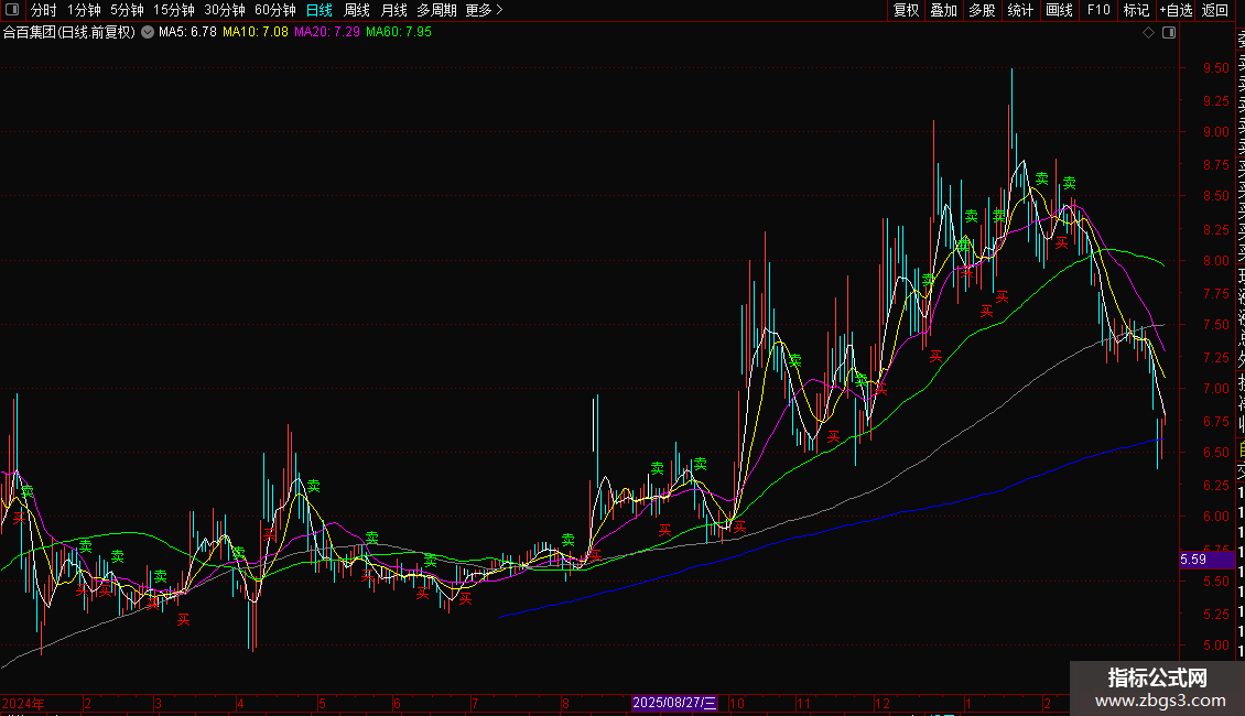 DRAWTEXT(CROSS(买线,卖线),LOW*0.98,'买'),COLORRED;