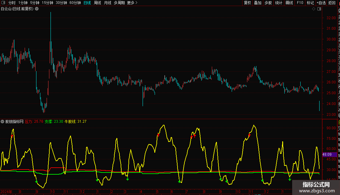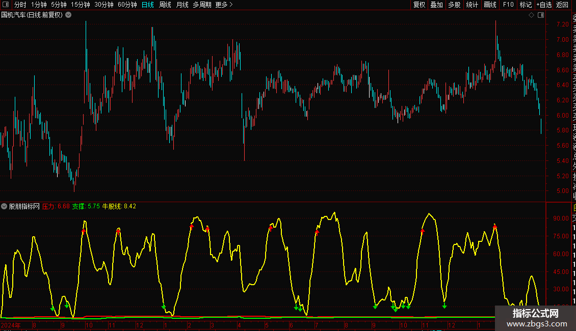 {通达信支撑压力看牛股副图指标加密 无未来}