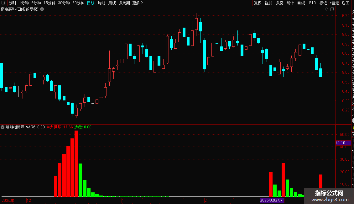 主力进场:IF(VAR5>REF(VAR5,1),VAR5,0),COLORRED,NODRAW;