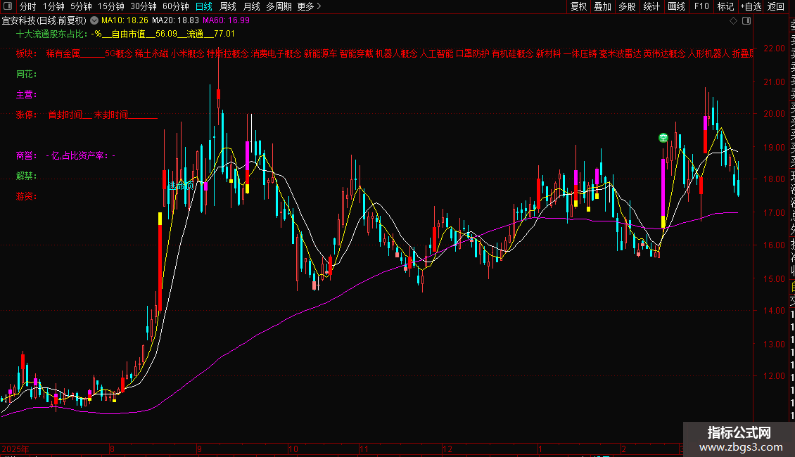 指标左上角添加十大流通股东占比,并在当日K线的右下方添加所属行业。