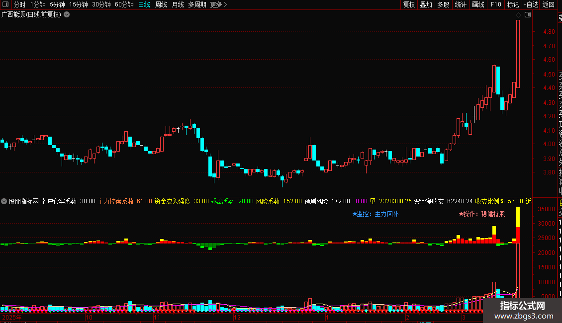 三日资金:SUM(资金收支,3),COLORWHITE,NODRAW;