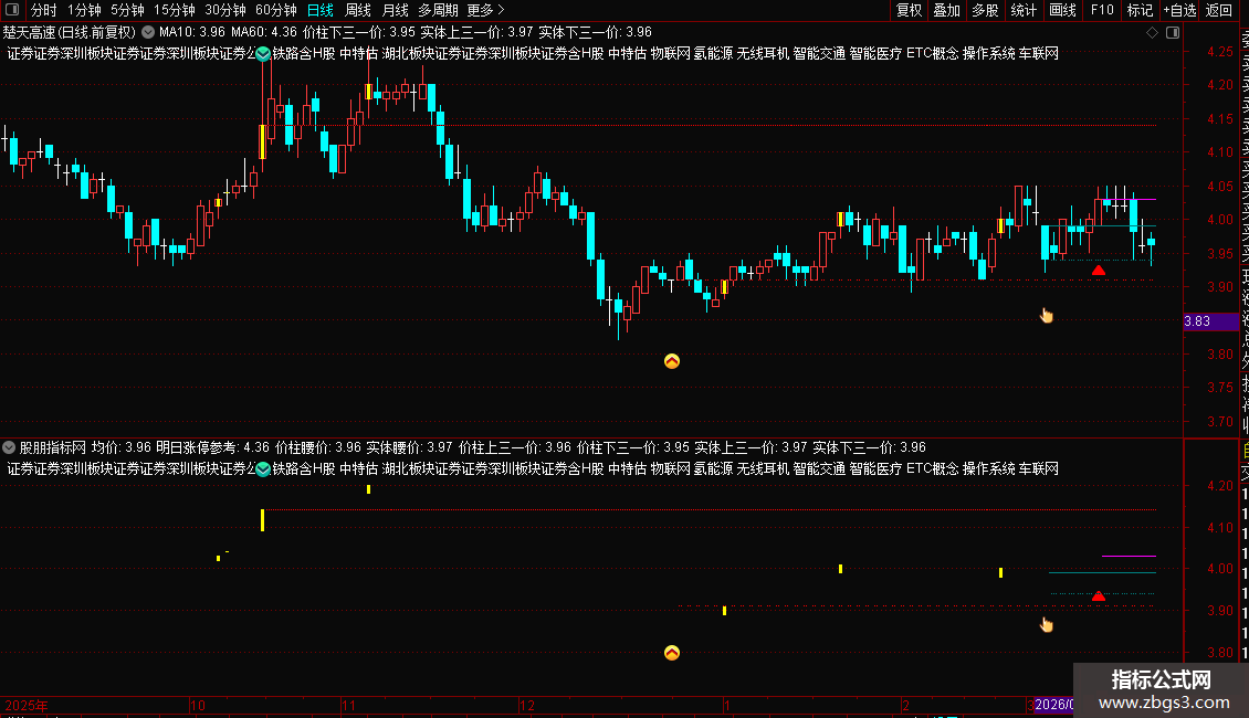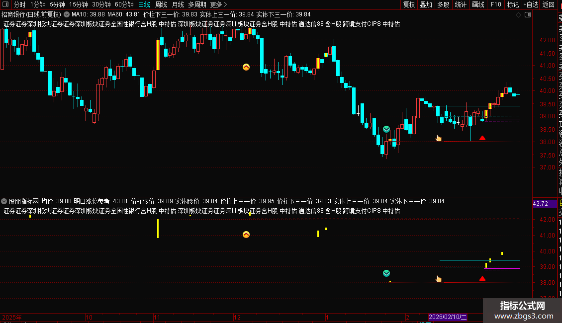 实体下三一价:MIN(OPEN,CLOSE)+ABS(OPEN-CLOSE)/3,NODRAW,COLORWHITE;