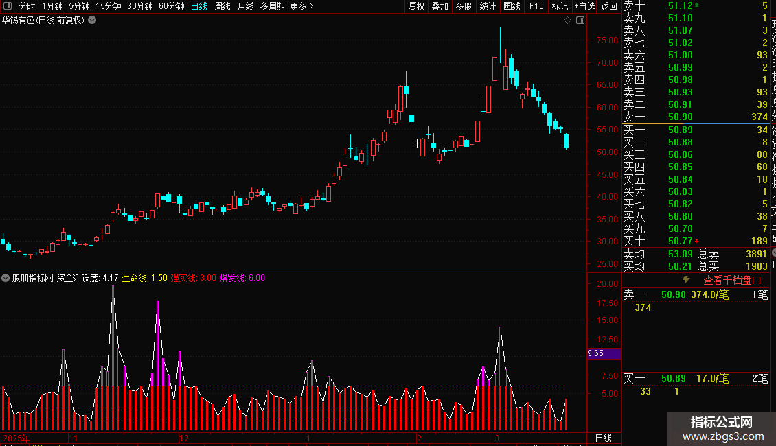 STICKLINE(XA_1>=0 AND 资金活跃度<1.5,0,资金活跃度,1,0),COLORRED;