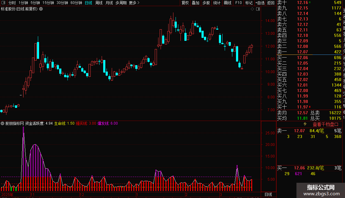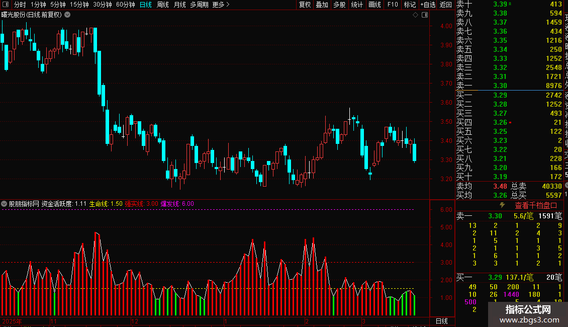 STICKLINE(XA_1<0 AND 资金活跃度<1.5,0,资金活跃度,1,0),COLORGREEN;