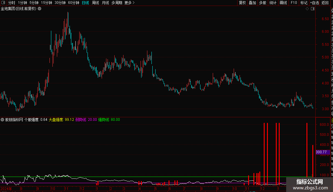 IF(个股强度>=80,个股强度,DRAWNULL),LINETHICK2;